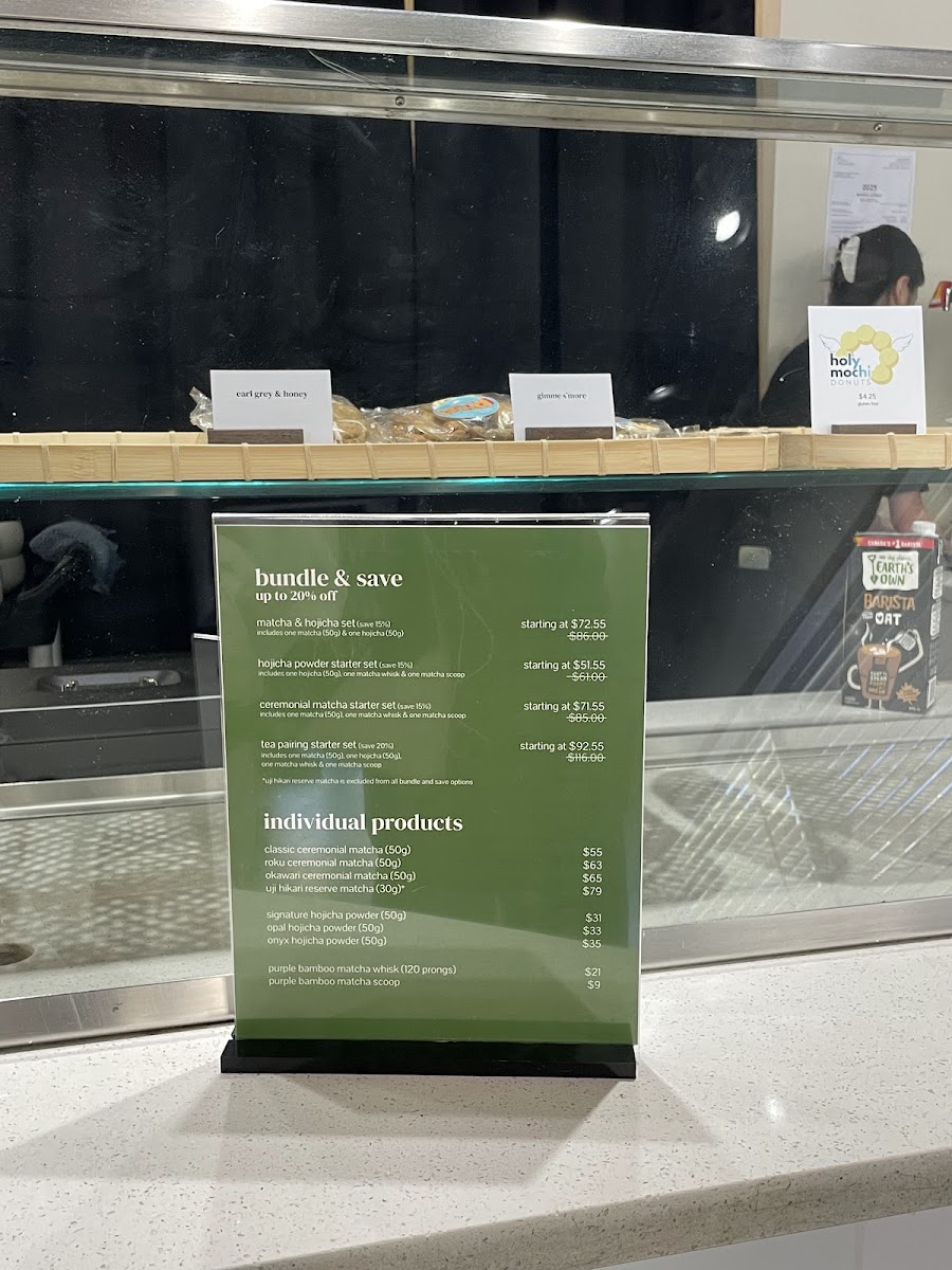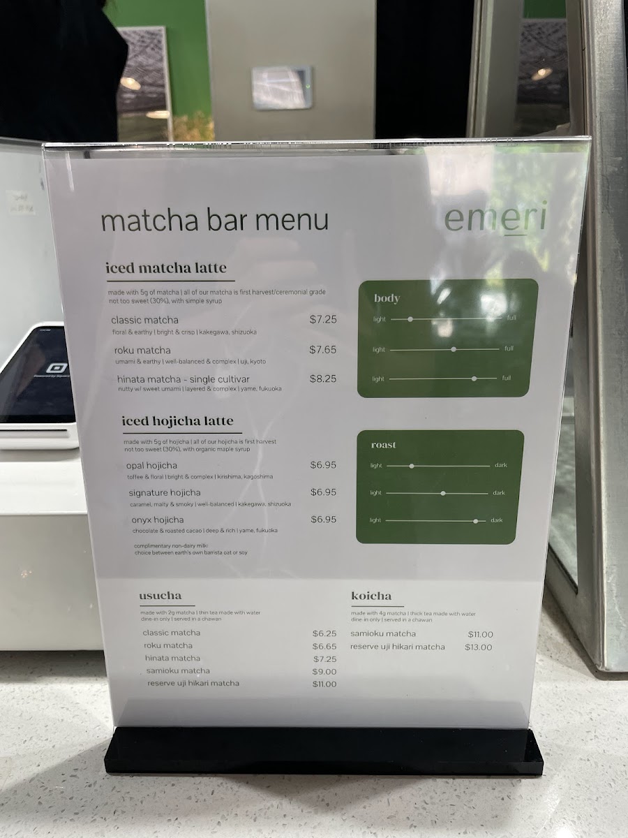 The menu features an exceptional range of matcha options, including the Classic Ceremonial Matcha and the rich Roku Ceremonial Matcha, each crafted to perfection. For those looking for something different, the Iced Hojicha Latte is refreshing and offers a smoky flavor profile.